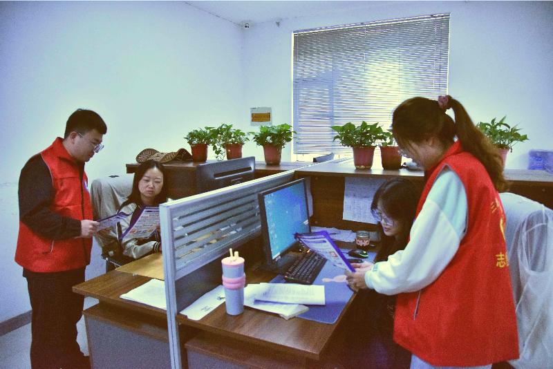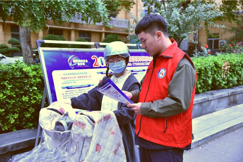 宣传活动现场,志愿者们在办公楼前搭建咨询服务台,主动向前来咨询的职工群众递上宣传资料,围绕《网络安全法》《个人信息保护法》《数据安全法》等核心法律法规,用通俗语言解读条文要义。同时,志愿者通过“案例+方法”的生动形式,让抽象的法律知识转化为可操作的防护指南,帮助公众快速提升风险辨别与自我保护能力。此外,志愿者们还深入小区,向居民发放网络安全宣传页,真正将网络安全知识送到群众家门口,让宣传触角延伸至每一位居民身边。