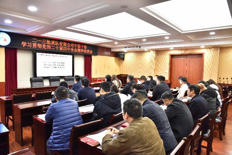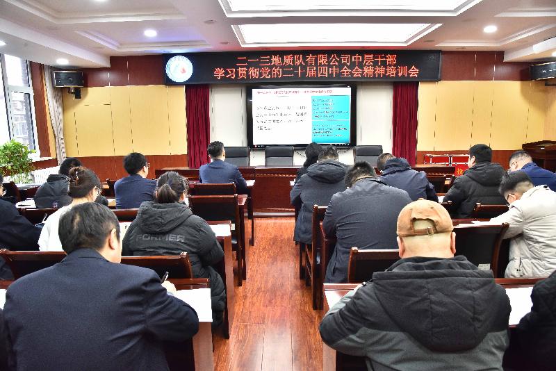 1月16日,二一三地质队有限公司组织中层干部开展学习贯彻党的二十届四中全会精神专题培训。