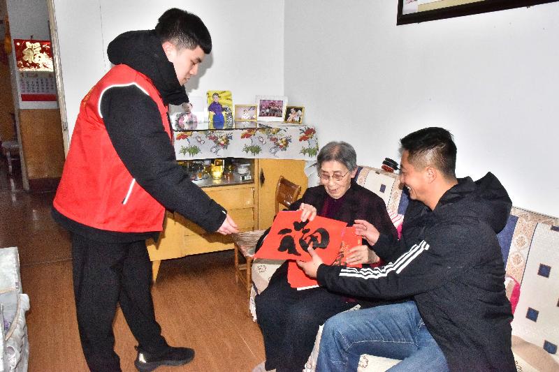 此外,公司志愿者还带着春联与“福”字,登门走访退休职工、困难职工家庭,与他们亲切交谈,关切询问身体状况与生活需求,用暖心话语和吉祥春联传递组织的关怀与节日的祝福。